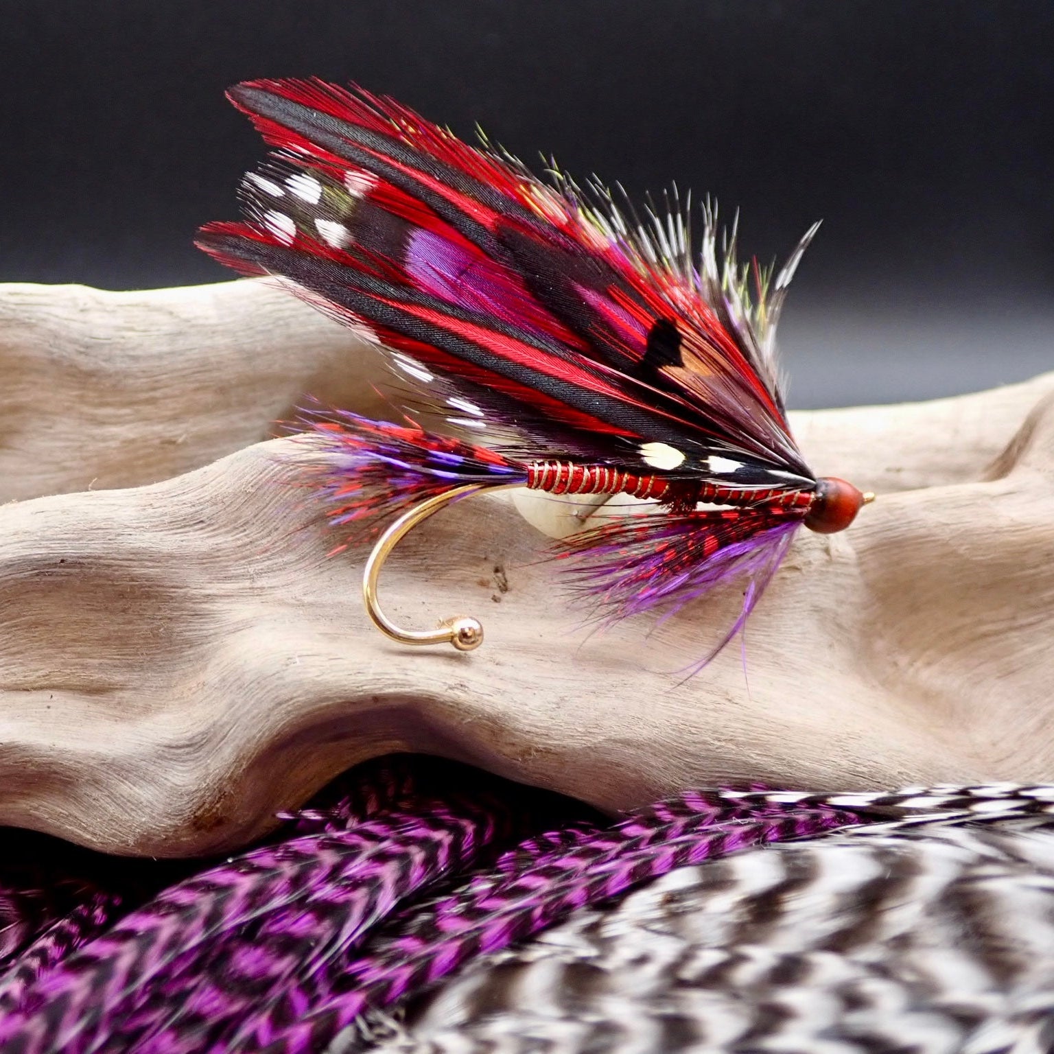 Inspired by traditional Atlantic salmon and steelhead flies, our boutonnieres and hat pins are much more than just flies. Last Light Boutonnières are a fusion of traditional tying techniques and materials that incorporate creative and artistic tying styles that highlight unique feather profiles resulting in timeless artistic pieces where "traditional techniques, freestyle tying, and creativity result in explosive design". Stand out on your big day with selections ranging from vibrant colors to earth tones. You can also visit the Custom Orders Page and work with us to design boutonnières specifically tailored to match your wedding colors and styles to outfit your wedding party.